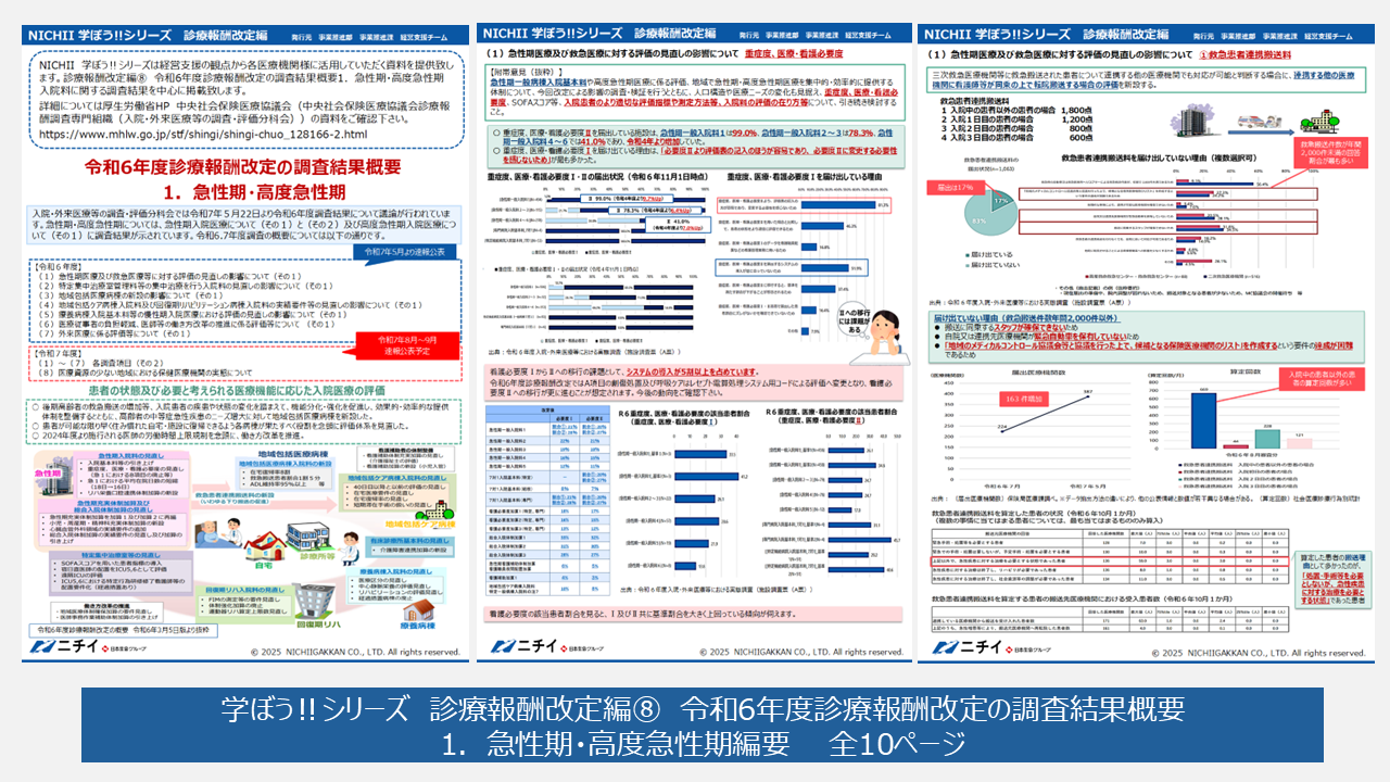 - 厚生労働省より公表された令和6年度診療報酬改定の調査結果より、急性期・高度急性期入院料に関する項目について掲載