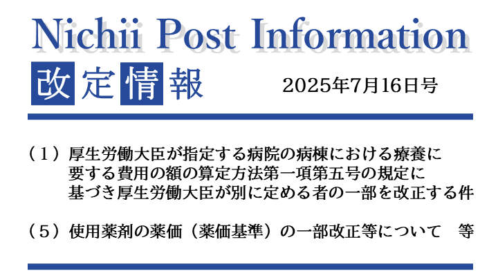「Nichii Post Information 」では、医療機関や医療従事者の皆様の診療行為・診療報酬請求に欠かせない医療制度に関する情報、改定情報、DPC や新規収載等、主に厚生労働省から発表された医療事務に関する最新情報をお届けします。より良い医療サービスの提供の一助となりますと幸いです。